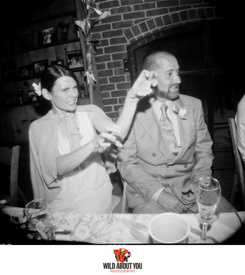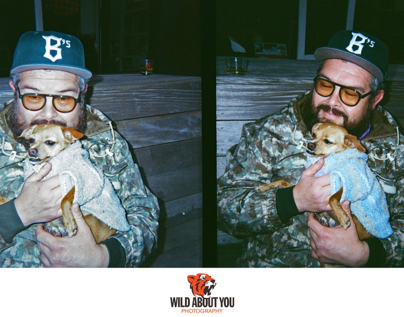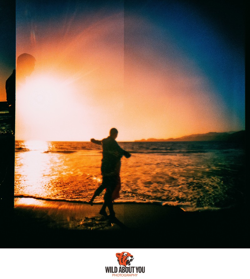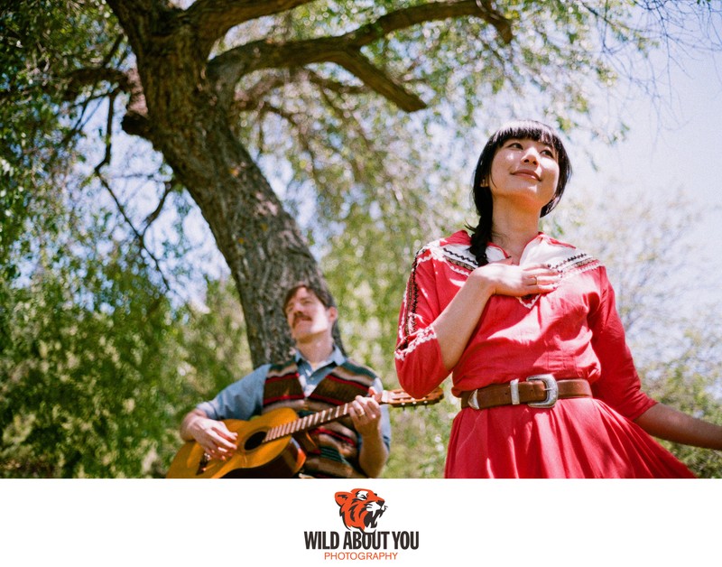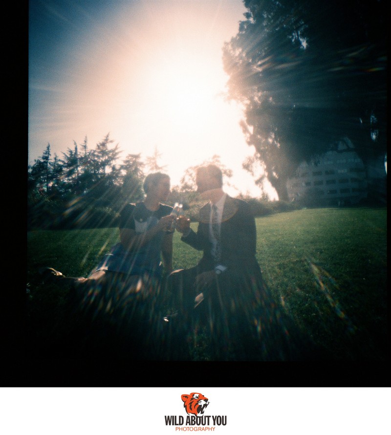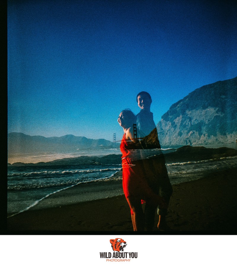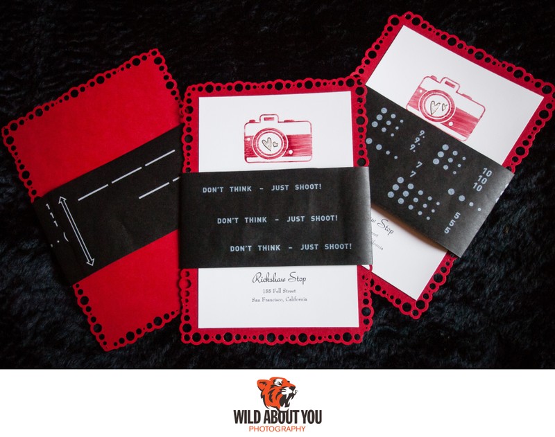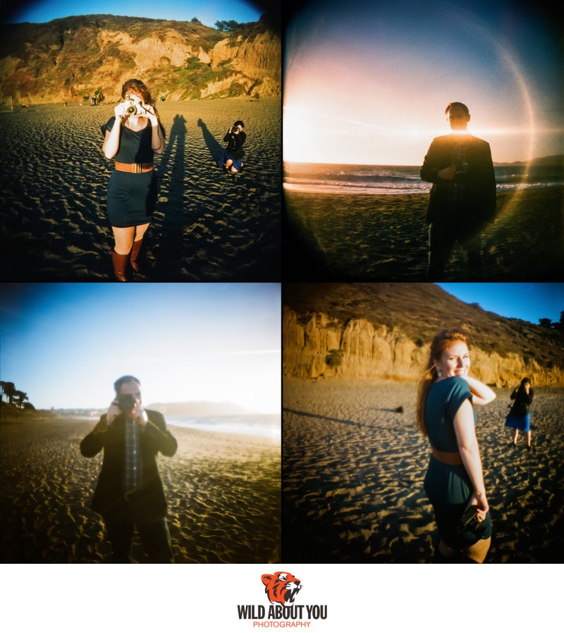 While we primarily use digital cameras nowadays for flexibility and instant feedback, our style is so deeply rooted in a film aesthetic that sometimes we can’t tell if we shot a photo on film or digital without checking. We're such nerds that we once took a digital selfie of us taking a selfie using a Polaroid Land Camera for our save-the-dates (see below; the actual Polaroid was fine). We also incorporated the backing paper of 120 film in our wedding invitations (see header photo above)!
