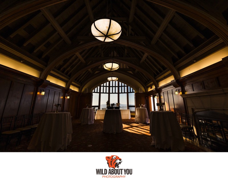 Inside, the vaulted wooden ceiling of the Vista Room evokes the intimacy of a chapel. It's especially glorious when sunlight streams through its lovely bay window. If your ceremony takes place outside, this is a wonderful option for cocktail hour and transitions seamlessly to the reception.